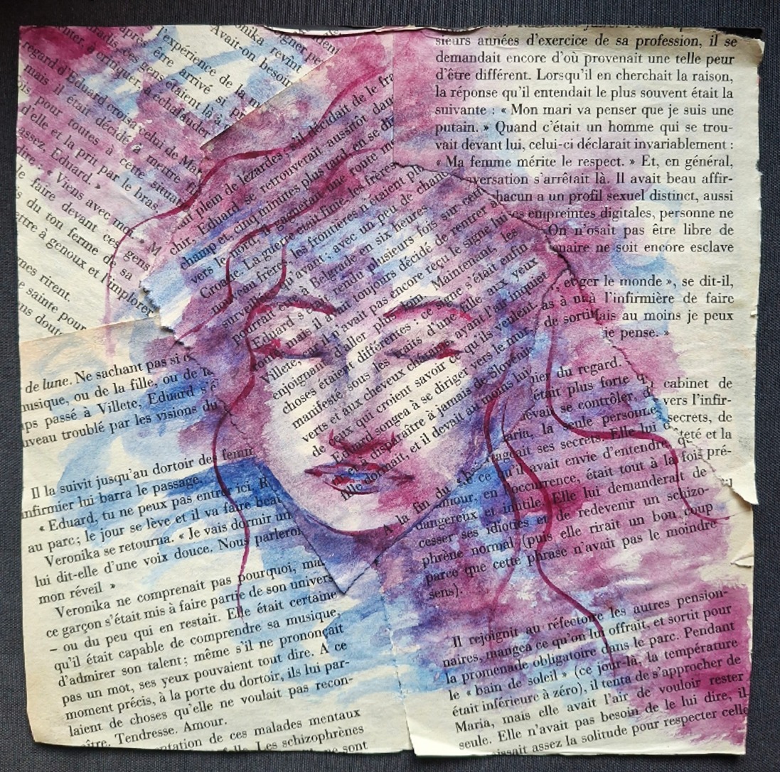Cette série explore le portrait de femmes de tous les horizons, à travers mes passions communes de l’illustration et de la lecture. Je recycle des livres abîmés et inutilisables, trouvés pour la plupart en boîte à livres ou dans des vide-greniers. Je donne une seconde vie aux mots en leur offrant l’opportunité de devenir des images à part entière. Les formes, les couleurs et les lettres s’allient pour transmettre encore plus d’émotions et devenir une décoration hors du temps et des conventions. Possibilité de réalisations sur demande ou de portraits personnalisés.