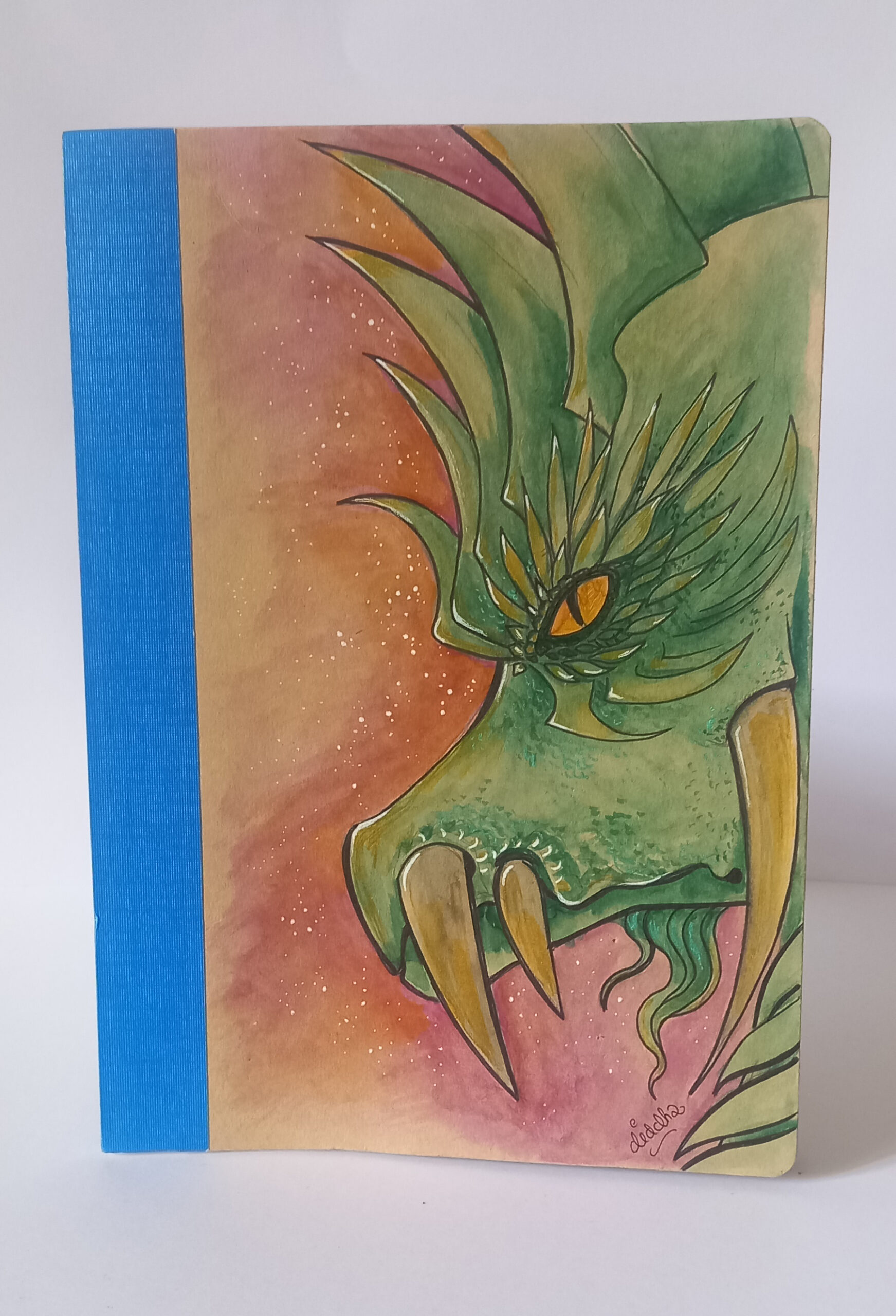 Ce carnet 21cm x 16cm présente une illustration aquarelle fantasy originale, inspirée par les univers imaginaires, les créatures mystérieuses et les paysages oniriques.