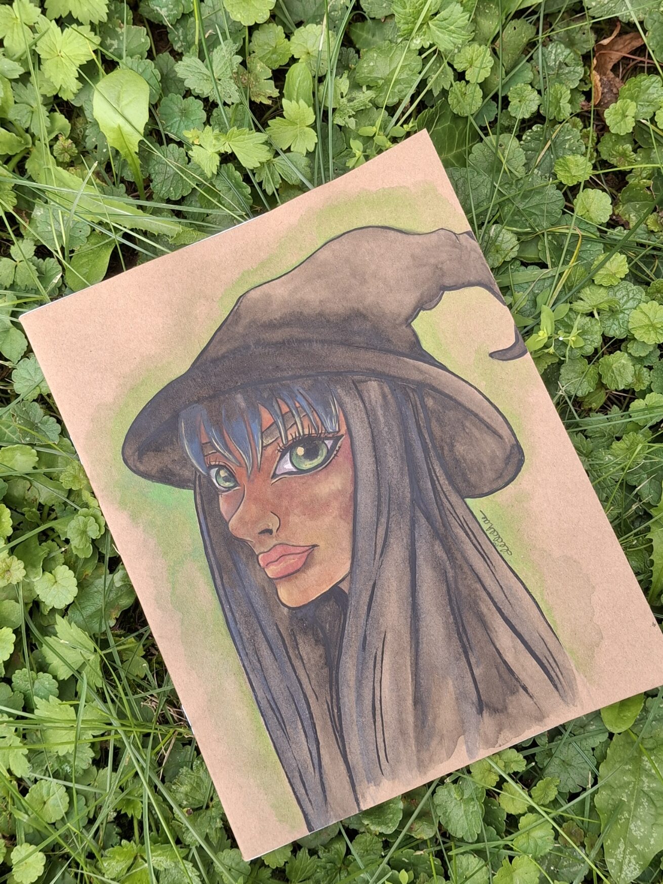 Ce carnet illustré est une pièce de papeterie artistique inspirée par les univers de la fantasy et de l’imaginaire. La couverture présente une illustration originale aquarelle faite à la main, représentant une sorcière fantasy.